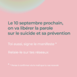 Nous pouvons, à notre échelle, soutenir cette démarche essentielle afin de les aider à susciter l’intérêt des médias. Comment ? En signant le manifeste qu’ils ont lancé. Chaque signature compte pour faire entendre la voix des personnes concernées et promouvoir une meilleure prévention.