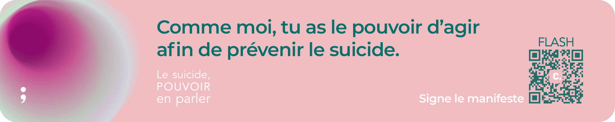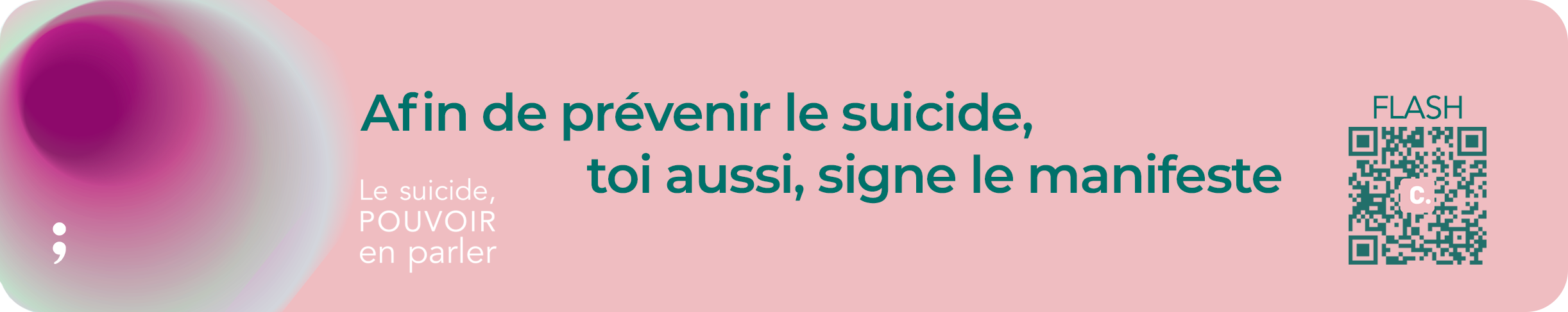 - insérer une bannière dans votre signature de mail qui renvoie vers le manifeste. Si vous travaillez dans le domaine de la prévention du suicide, cette bannière est faite spécialement pour vous.